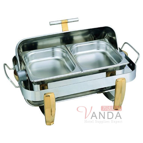 豪华镀金方形全翻盖自助餐炉(双格不锈钢)