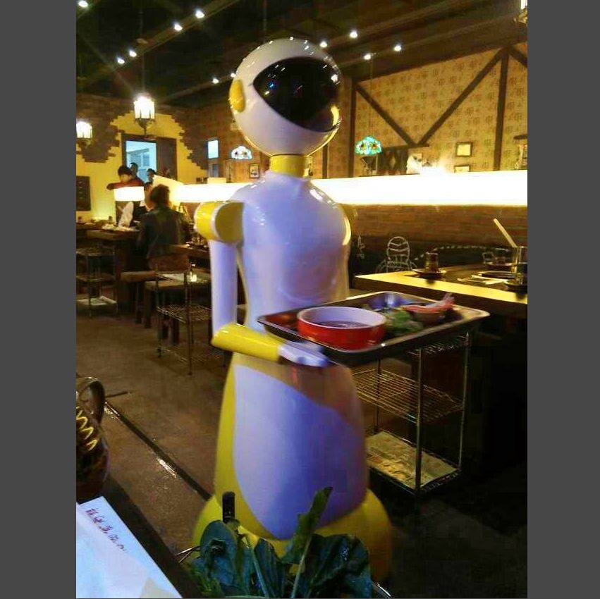直径60公分左右:不同外形的送餐机器人尺寸不同,总体大概为570mm左右,可在800mm宽的通道内行走,便于已有饭店随时启用送餐机器人;